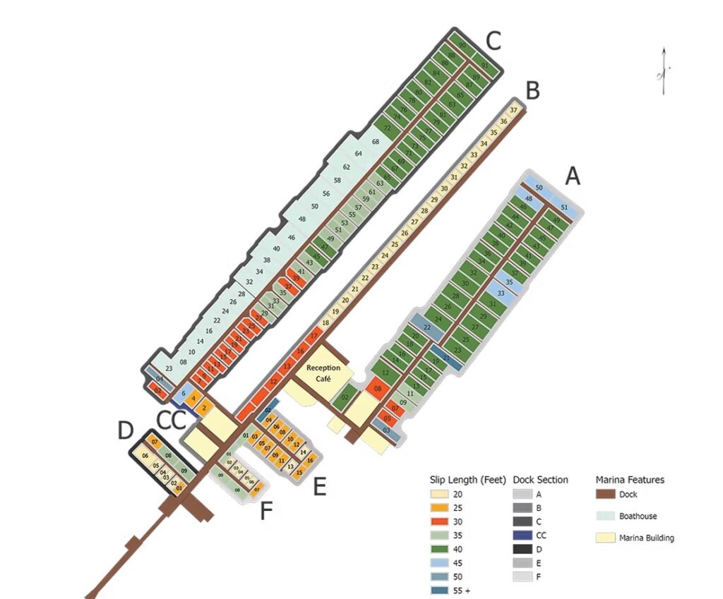 Guest moorage; 930’, Power: 30AMP included; washrooms; laundry; showers; pump out. Water; ice; garbage disposal; recycling; Social Dock w/BBQ and covered tables; Wi-Fi; meeting room. Newly renovated Café opening spring.
