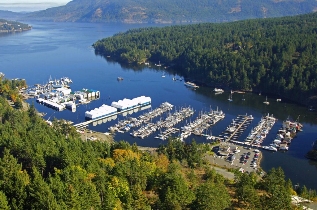 Part of the abundant Cowichan region on Vancouver Island, the marina is located in the heart of the Gulf Islands and is accessible by water via Sansum Narrows. Find us in the far south end of Maple Bay with the fuel dock and visitor moorage just past the state-of-the-art blue and white Yacht Enclosures. Some of our amenities and services include: