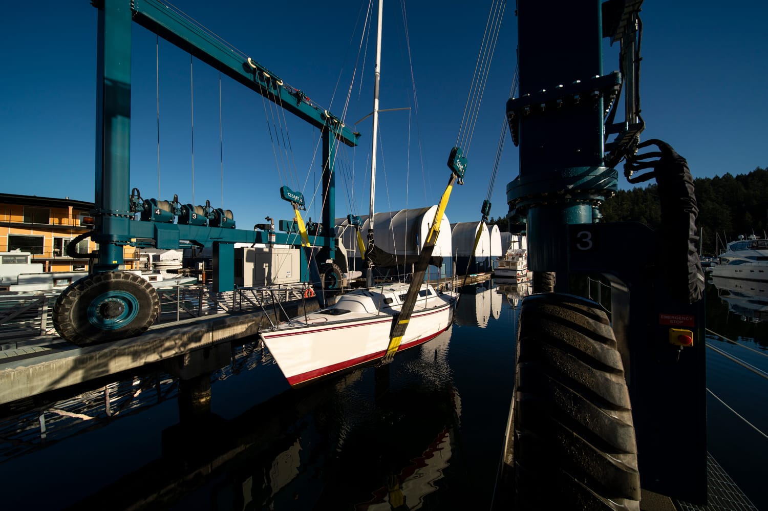 • Boatyard and haul-out area featuring a new 55-ton Travelift.