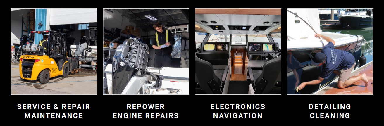 *Technically our address is Richmond but you can’t get to us from Richmond, located at Milltown Marina in South Vancouver close to the Arthur Laing Bridge near the Vancouver Airport. We offer full-service repairs and maintenance for recreational boats both on land and in-water. Our experienced marine technicians and support team provide a wide range of services to ensure your boat is in top condition.